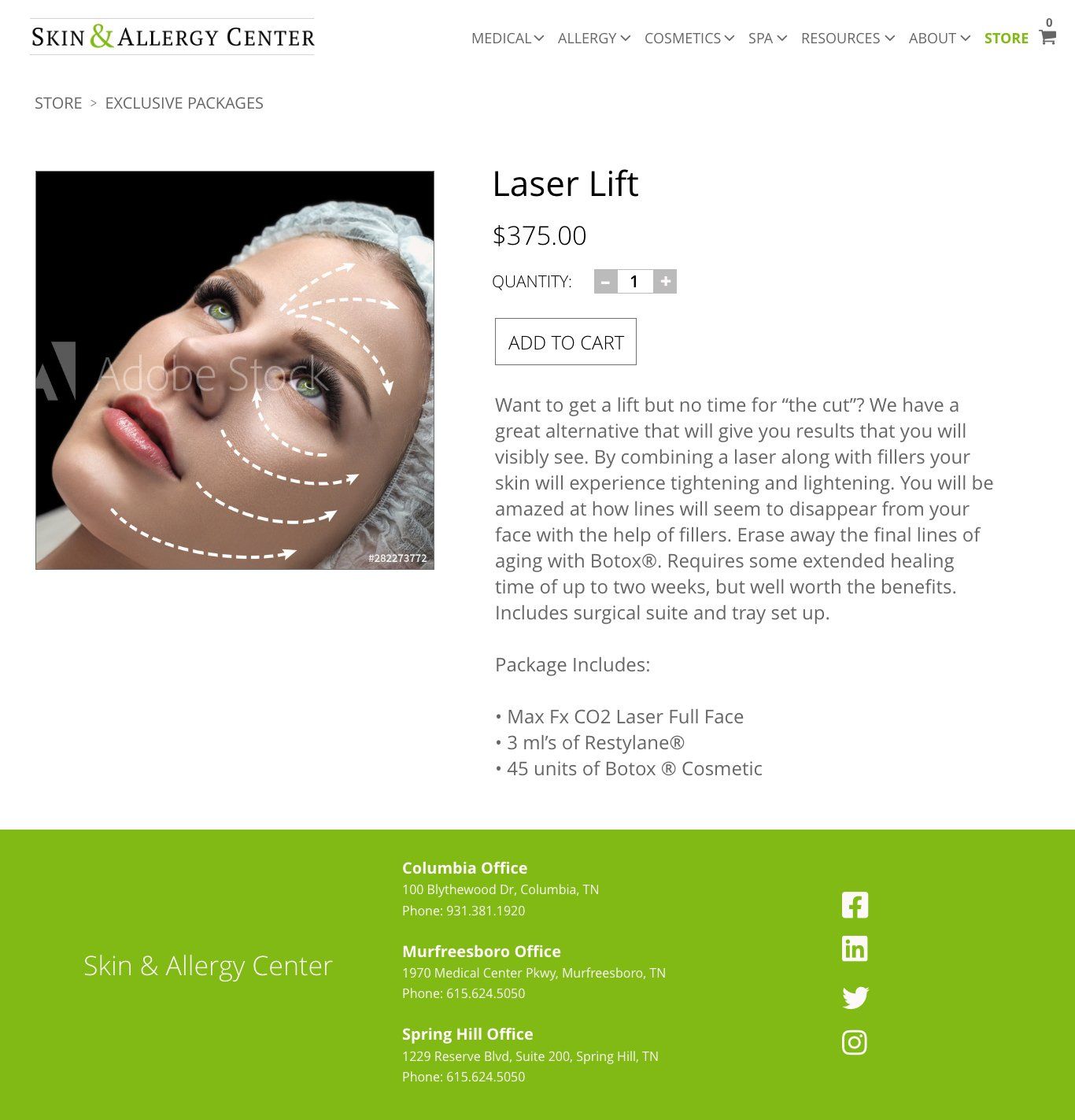 The Skin & Allergy Center is a dermatology practice with three offices in Tennessee.