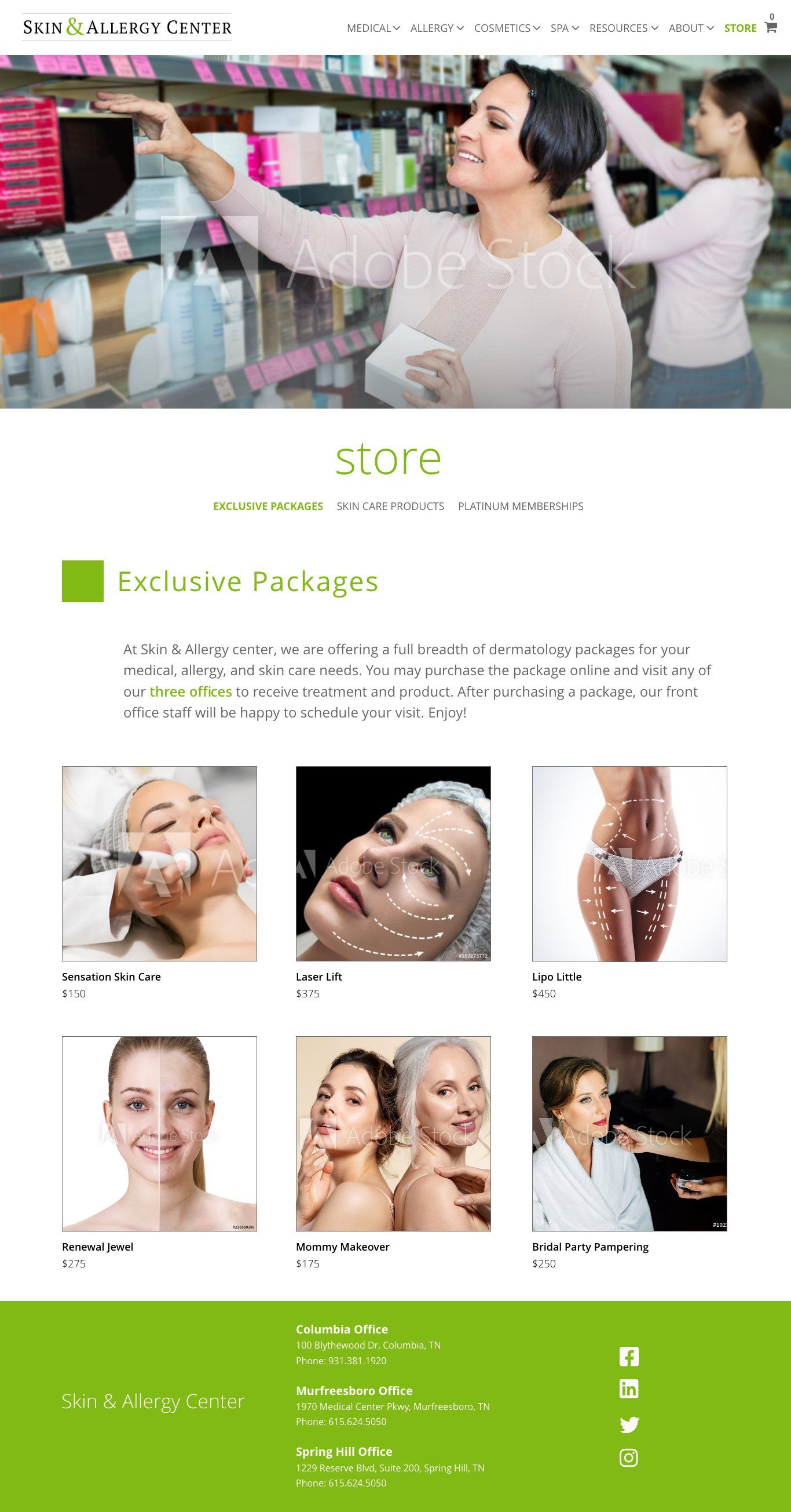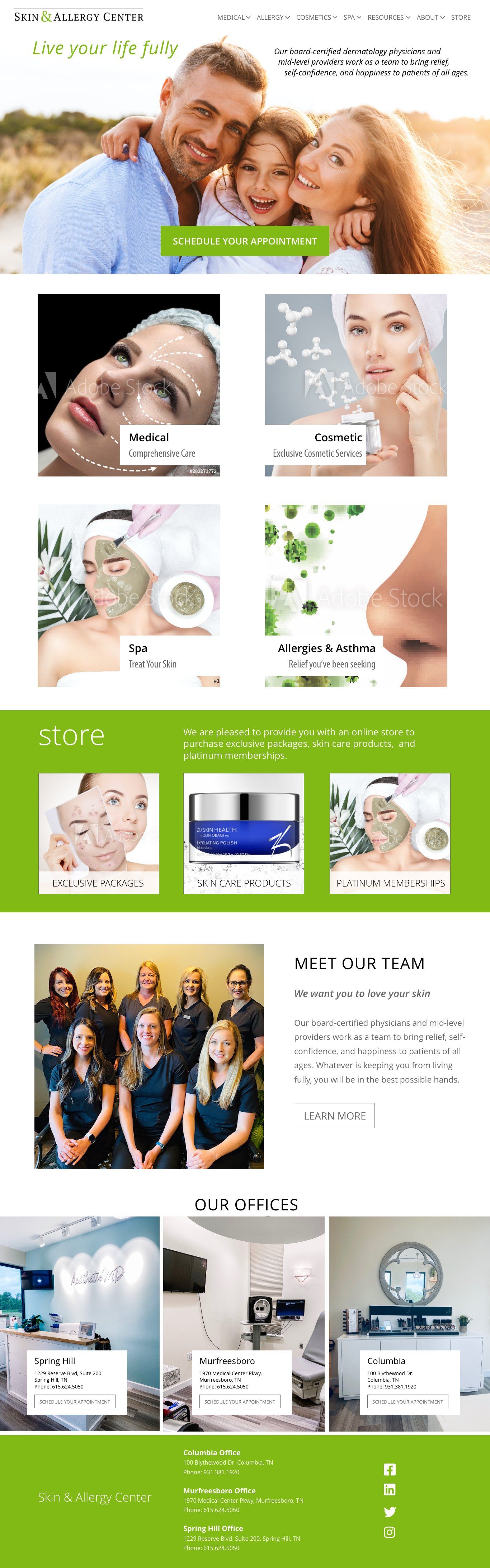 The Skin & Allergy Center is a medical dermatology practice with three offices in the Nashville Tennessee area. Having a many year working relationship with this practice, Daniel suggested a much needed web site redesign. His purpose was more than a cosmetic refresh. He proposed shifting focus marketing messaging to highlight the key areas of business: medical, cosmetic, allergies/asthma, and their spa. In addition, Daniel listened to the lead physician and designed a new e-commerce store, a brand new business venture for this practice.