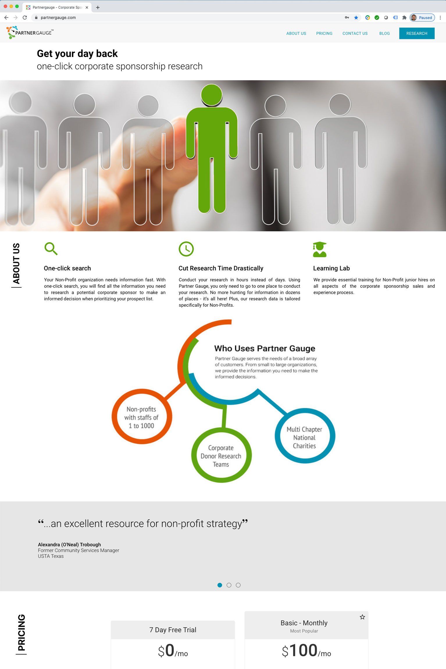 PartnerGauge.com is a SAAS startup for the Non-Profit industry. It provides corporate sponsorship research & training tools which saves time & money for non-profits.